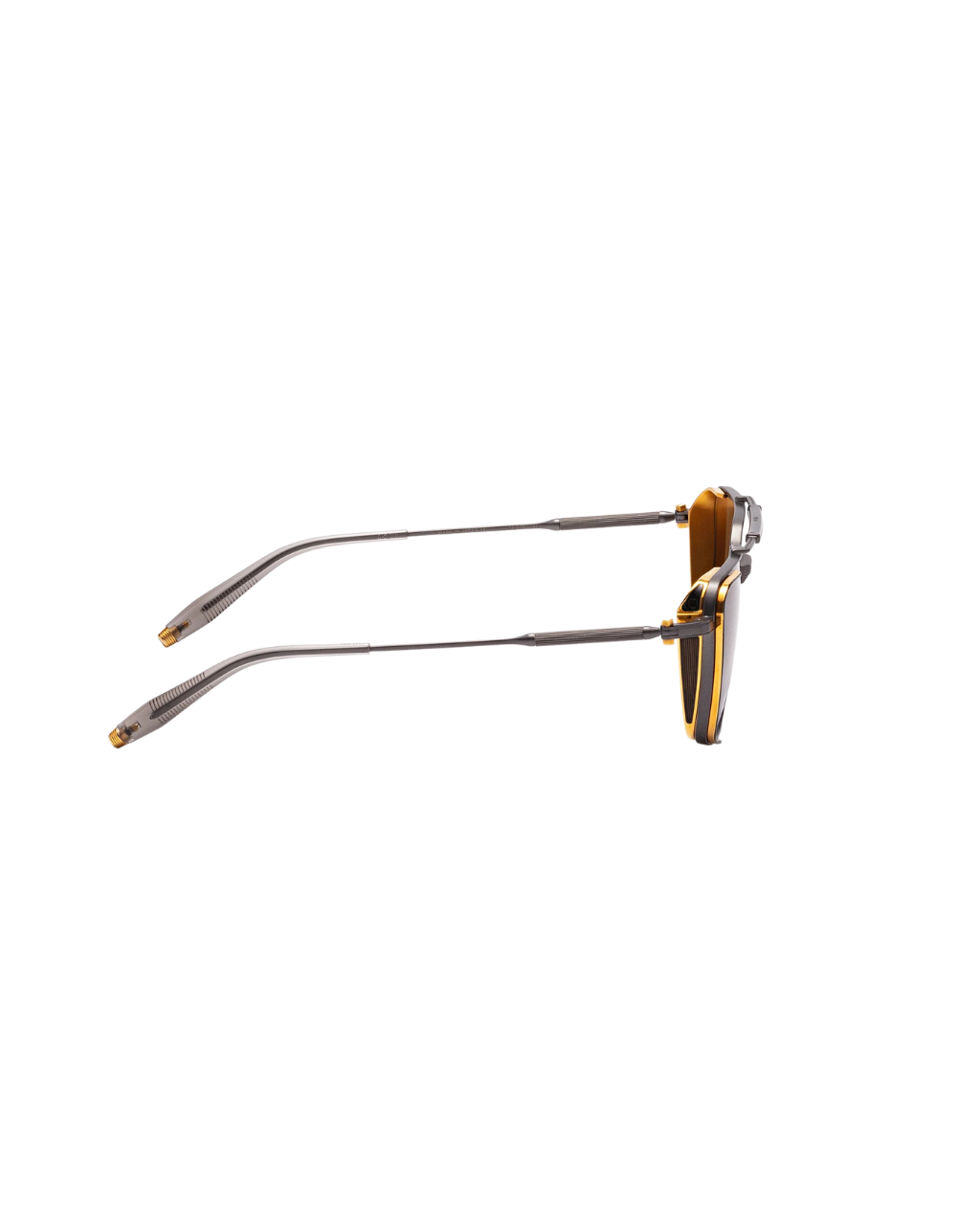 Temples: Custom titanium with knurled round components, threaded tube screw system and Japanese acetate