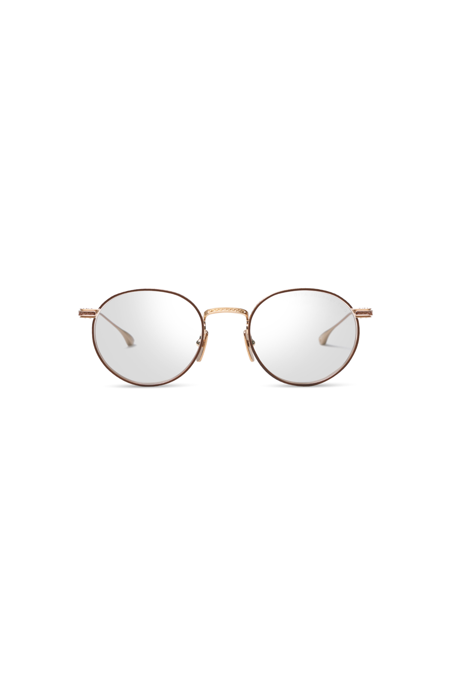 Frame Color: Brushed White Gold / Mahogany