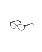Striking butterfly-shaped eyeglasses for women, crafted from vibrant plastic in a fantasy black, turquoise, and polished purple palette. Designed for comfort and individuality, with demo lenses ready for prescription customization.
