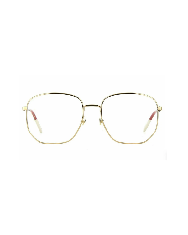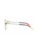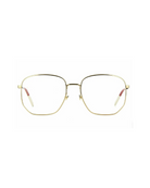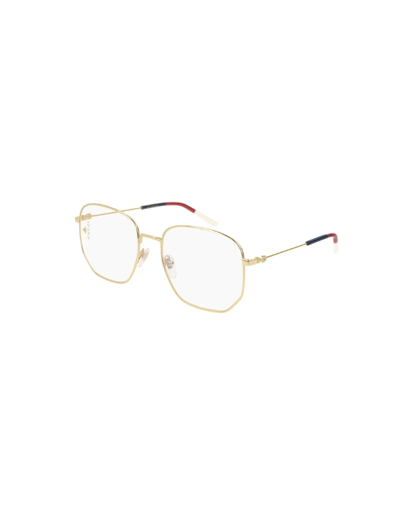 A refined 80s-inspired octagonal frame in lightweight metal, featuring printed Gucci and bumblebee logos on the lenses. Chromatic web-tone tips and front detailing add a unique finish.