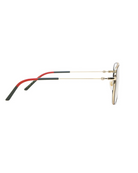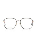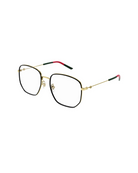 Classic square metal frame with acetate rims and end tips for added comfort and style. Features the iconic Gucci interlocking logo on both temples for a polished, everyday look.