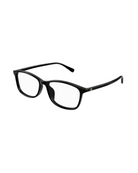 Bold rectangular eyeglasses in premium black acetate, designed for the modern. Featuring exceptional Gucci craftsmanship and an adjustable lens fit for all-day comfort and effortless luxury.