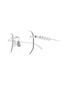 Sleek rectangular eyeglasses crafted in shiny silver metal, part of Gucci's Lettering line. Made in Japan, this minimalist design reflects refined elegance and precision craftsmanship.