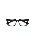 Soft rectangular shape featuring the Naked Wirecore concept, visible metal wirecore, and corner angle detailing. Finished with alternate fit and laser-engraved Saint Laurent logo on the temples.