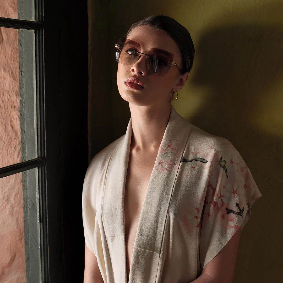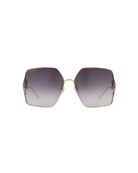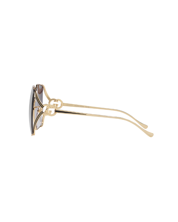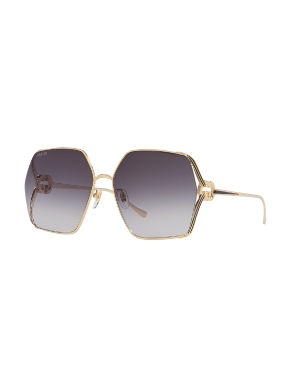 Vintage-inspired oversized square frames with enameled temple details, integrated GG hinge, and gold finish—offering bold elegance with a modern twist and refined craftsmanship.