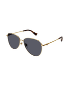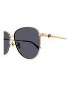 Elegant full-metal navigator sunglasses with a minimalist silhouette. Featuring the GG Running logo on the temples and grey lenses, this style blends feminine charm with refined simplicity.